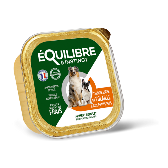 Volaille* 27% (dont 27% de frais), Porc* 22% (dont 17% de frais), Petits pois* 4%, Glycine, Pulpe de betterave* 0.47%, Huile de tournesol* 0.37%, Minéraux, Dextrose, Huile de poisson* 0.11%.