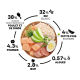 Viande de poulet et de dinde déshydratée* (38%), Riz blanc* (32%), Graisse de poulet et de dinde*, Petits pois entiers* (4%), Pulpe de betterave déshydratée* (4%), Poulet hydrolysé* (3%), Œuf déshydraté* (2,2%), Minéraux, Levure de bière*, Algues déshydratées* (source de DHA) (0,57%), Pulpe de pomme déshydratée* (0,5%) (équivalent à 4,3% de pommes fraîches), Mannane-oligosaccharides MOS* (0,1%), Fructo-oligosaccharides FOS* (0,1%), Chondroïtine (900 mg/kg), Glucosamine (813 mg/kg), Concentré de levure* (source naturelle de nucléotides): 0,09%, Yucca schidigera*. *Ingrédients naturels.