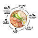 Protéines: 32%, Matières grasses: 18%, Matières inorganiques: 7%, Cellulose brute: 2,2%