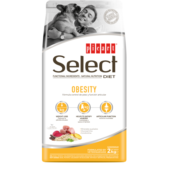 Picart Select Diet OBESITY est un régime conçu pour favoriser la perte de poids chez les chiens adultes en surpoids qui doivent contrôler leur apport calorique