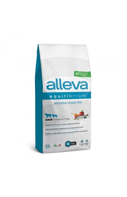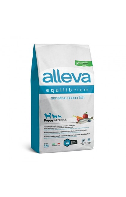 Croquettes Super Premium complètes sans gluten Alleva Equilibrium Sensible Poisson de mer pour chien adulte de petite et moyenne taille.