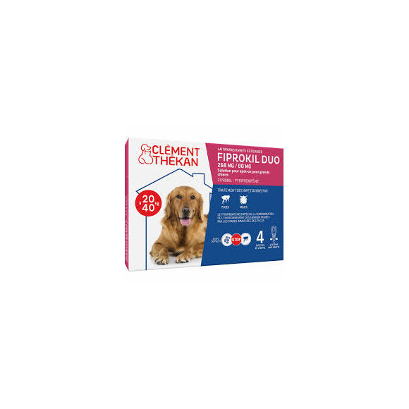 Fiprokil Duo 268mg/ 80 mg solution pour spot-on grands chiens de 20kg à 40 kg. Antiparasitaire externe. Traitement contre les puces, tiques et oeufs de puces