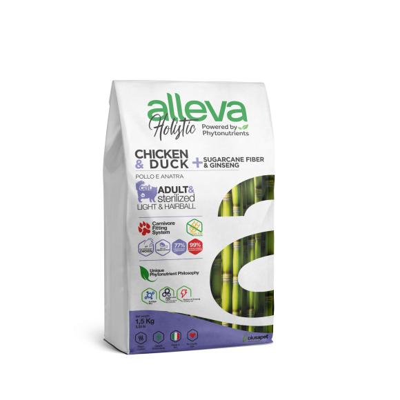 Alleva Holistic est la gamme de croquettes Ultra Premium sans céréales qui offre à votre chat une alimentation sèche complète sans compromis pour chats castrés, stérilisés ou même chats d'intérieur.