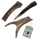 Les bois de cerfs pour chien sont issus de la mue naturelle des cerfs, sans qu’aucun animal ne soit maltraité. Les vois de cerfs nettoient les dents des chiens et sont 100% naturels. Le chien mord le bois et essaie d’en extraire la moelle. Cela nettoie naturellement les dents et est aussi une bonne source de minéraux. Si le chien est particulièrement glouton, ou est de race prédisposée à l’obésité, il est conseillé de laisser le chien mordiller le bois avant le repas. Cela réduira son appétit. Le bois est très résistant et dure plus longtemps que les bâtons dentaires industriels.